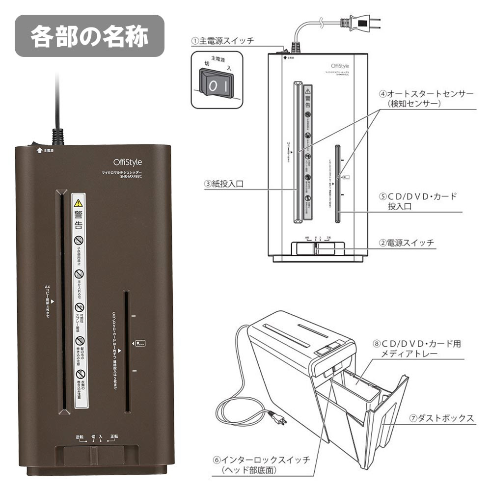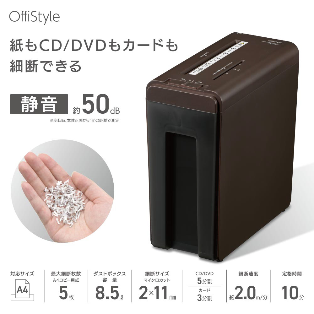 | 商品名 | 静音マイクロマルチシュレッダー OffiStyle ブラウン SHR-MX492C [マイクロカット /A4サイズ] |