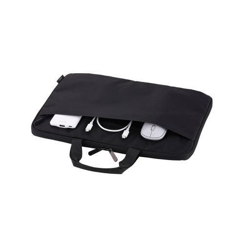 前面にはケーブルや小物をすっきり収納できるファスナーポケット付き。バッグの中がごちゃつかず、必要なものをすぐに取り出せます。