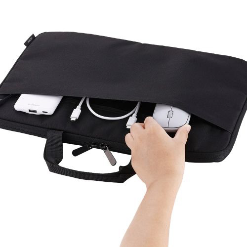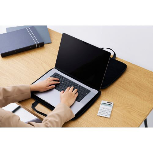 バッグを開いてそのままパソコン操作が可能!三辺が大きく開いて出し入れしやすい、軽量スリムなインナーバッグです。カバンの中でもかさばらず、ハンドル付きで取り出しもスムーズ。内側には起毛素材を採用し、機器を傷からしっかり守ります。