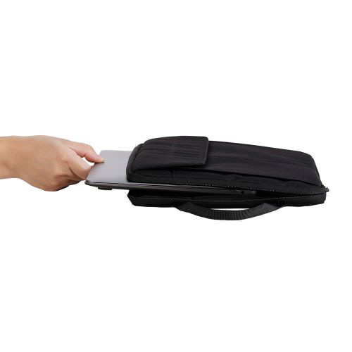 ケース前面には、用途に応じて使い分けできる2つの仕分けポケットがあり、マチ付きでマウスなど厚みがある小物の収納に便利です。