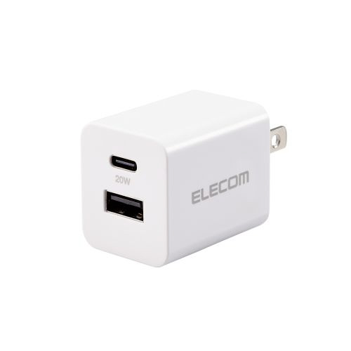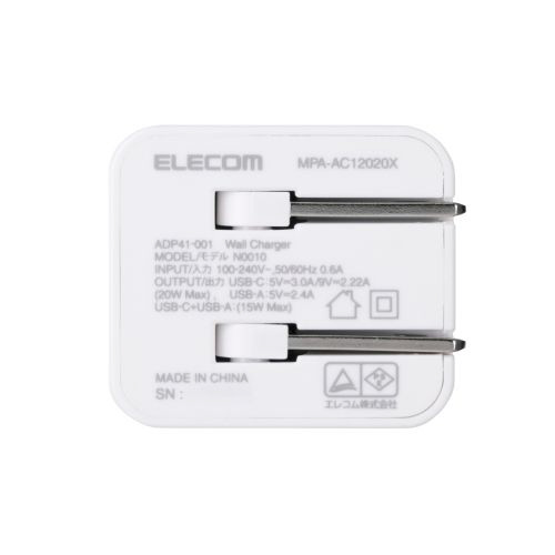 商品名 充電器 USB Type-C 20W PD対応 2ポート USB-C USB-A コンセント iPhone iPad Android 各種対応 PSE適合 折りたたみ式プラグ ホワイト MPA-AC12020XWH