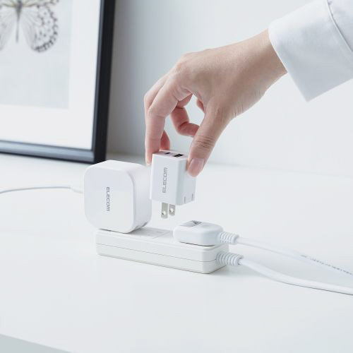 USB Type-C(TM)ポートやUSB-Aポートを搭載し、それぞれのポートに対応するスマートフォンやタブレットなどでも別々のAC充電器を用意することなく、これ1台で充電できるAC充電器です。