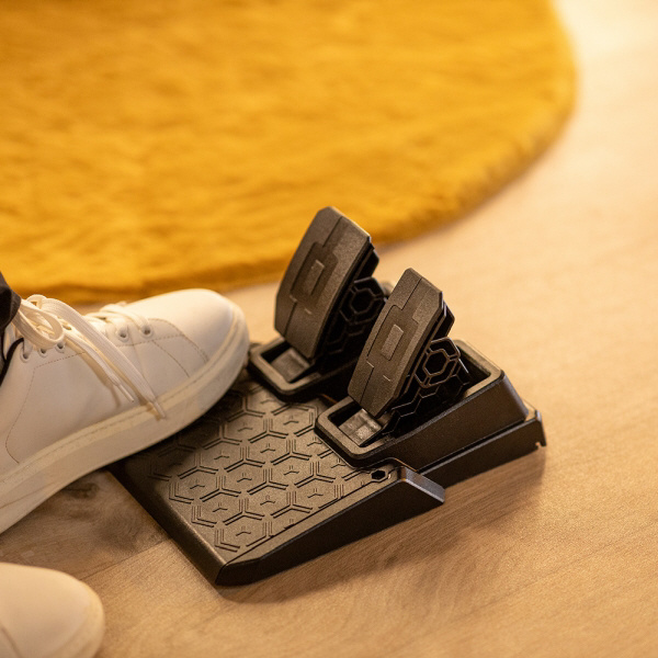 アクセルとブレーキを備えた2ペダルのペダルセットが同梱されています。ペダルにはThrustmasterが特許を取得している、無接点のH.E.A.R.T. ホールエフェクトセンサーが搭載され、