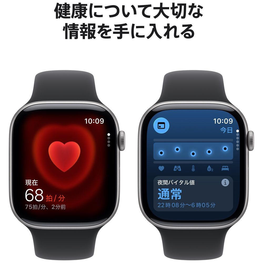 Apple Watch Series 11(GPSモデル)- 46mmスペースグレイアルミニウムケースとブラックスポーツバンド - S/M MEV04J/A