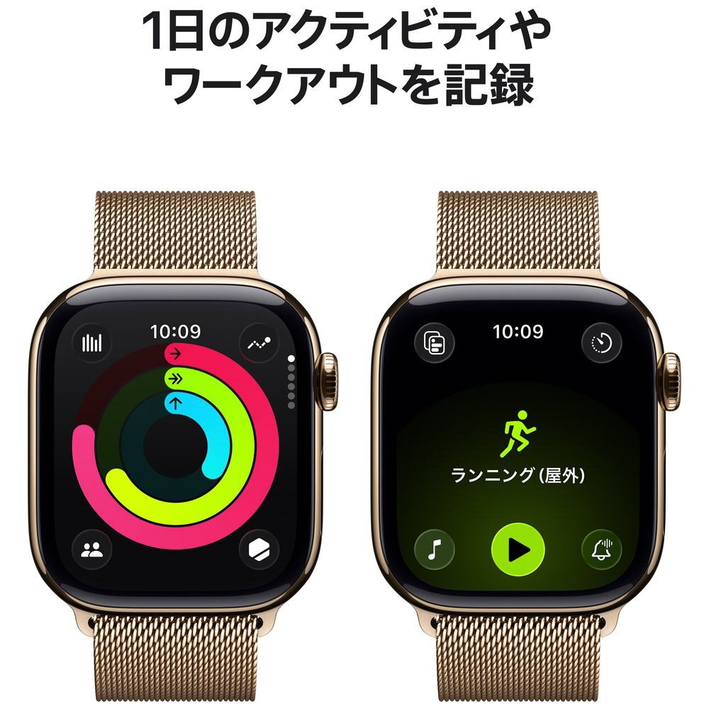 Apple Watch Series 11(GPS + Cellularモデル)- 42mmゴールドチタニウムケースとゴールドミラネーゼループ MF8Y4J/A