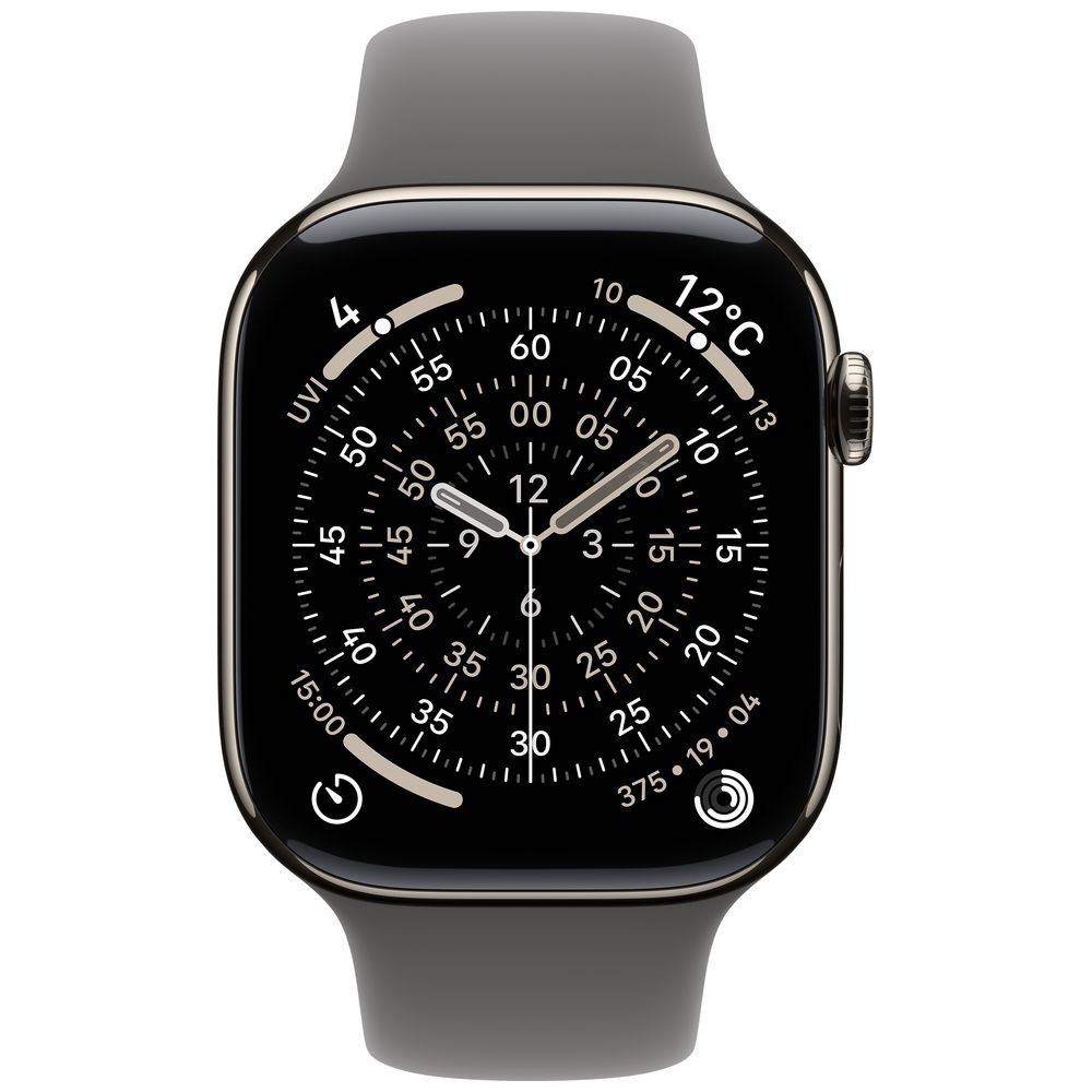 Apple Watch Series 11(GPS + Cellularモデル)- 46mmナチュラルチタニウムケースとストーングレイスポーツバンド - M/L MFCX4J/A