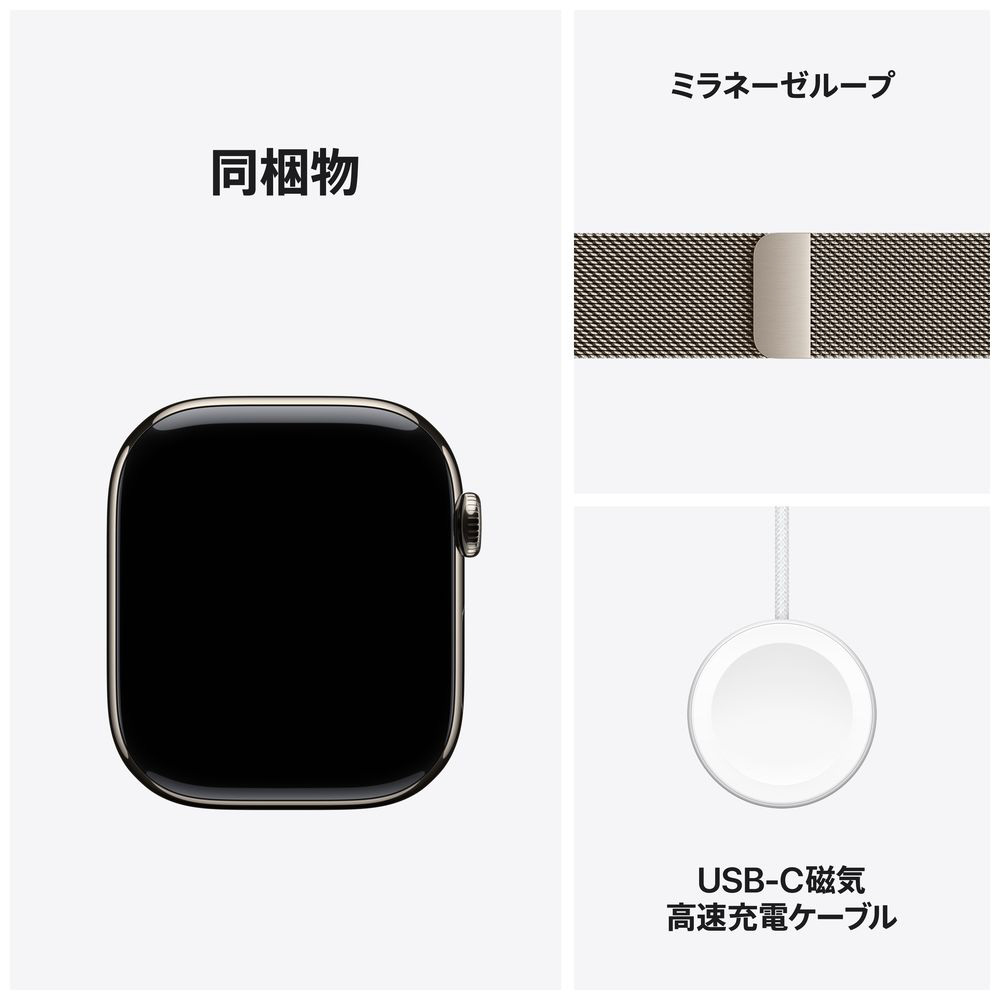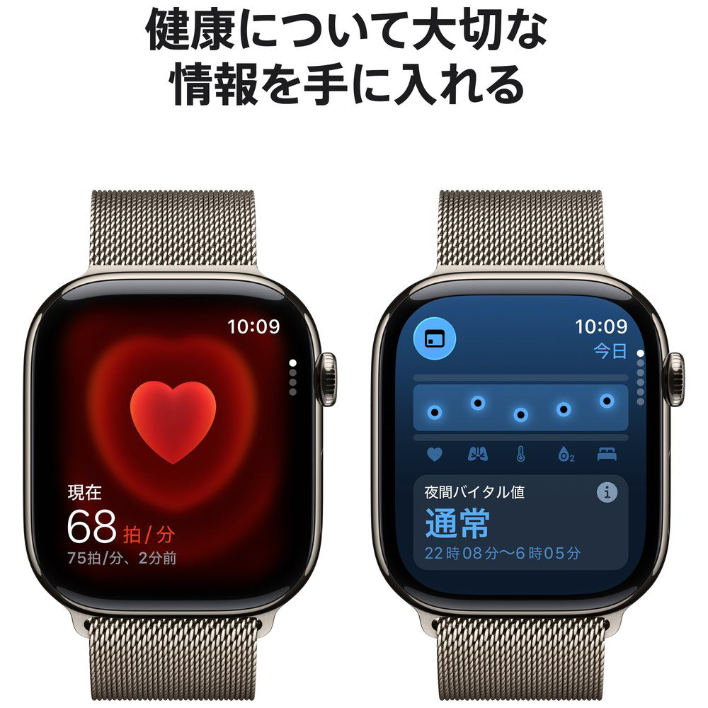 Apple Watch Series 11(GPS + Cellularモデル)- 46mmナチュラルチタニウムケースとナチュラルミラネーゼループ - M/L MFD04J/A