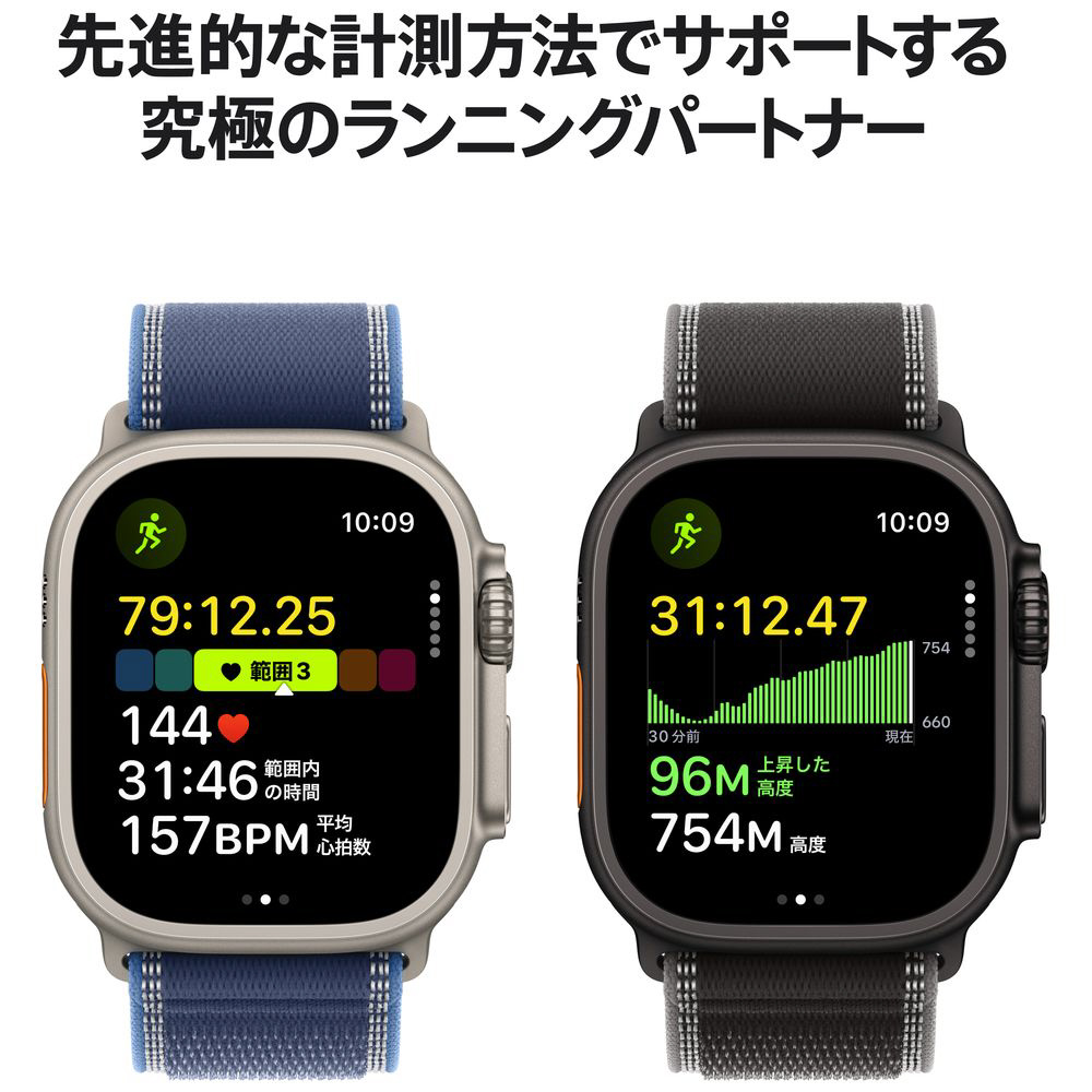 Apple Watch Ultra 3(GPS + Cellularモデル)- 49mmナチュラルチタニウムケースとブルー/ブライトブルートレイルループ - S/M MEWR4J/A