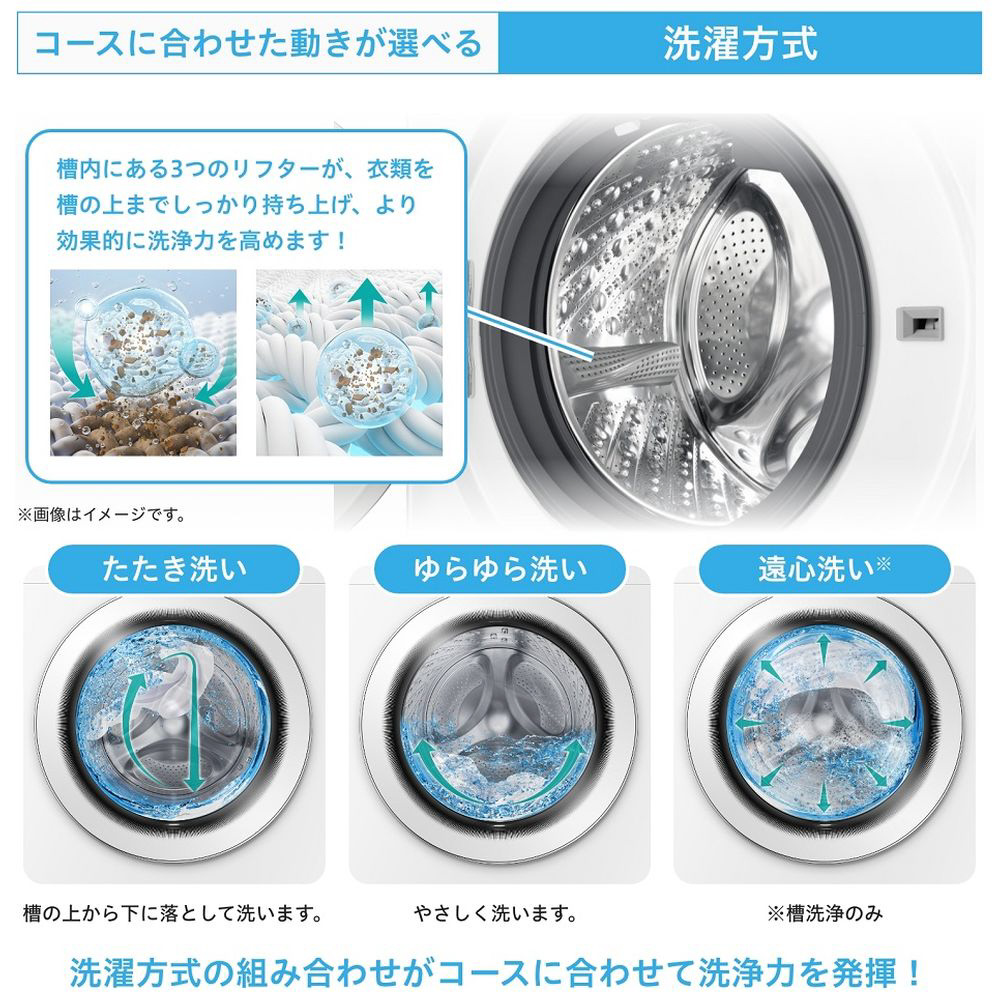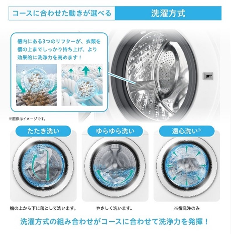・たたき洗いとゆらゆら洗いの組み合わせで、コースに合わせて洗浄力を発揮します。