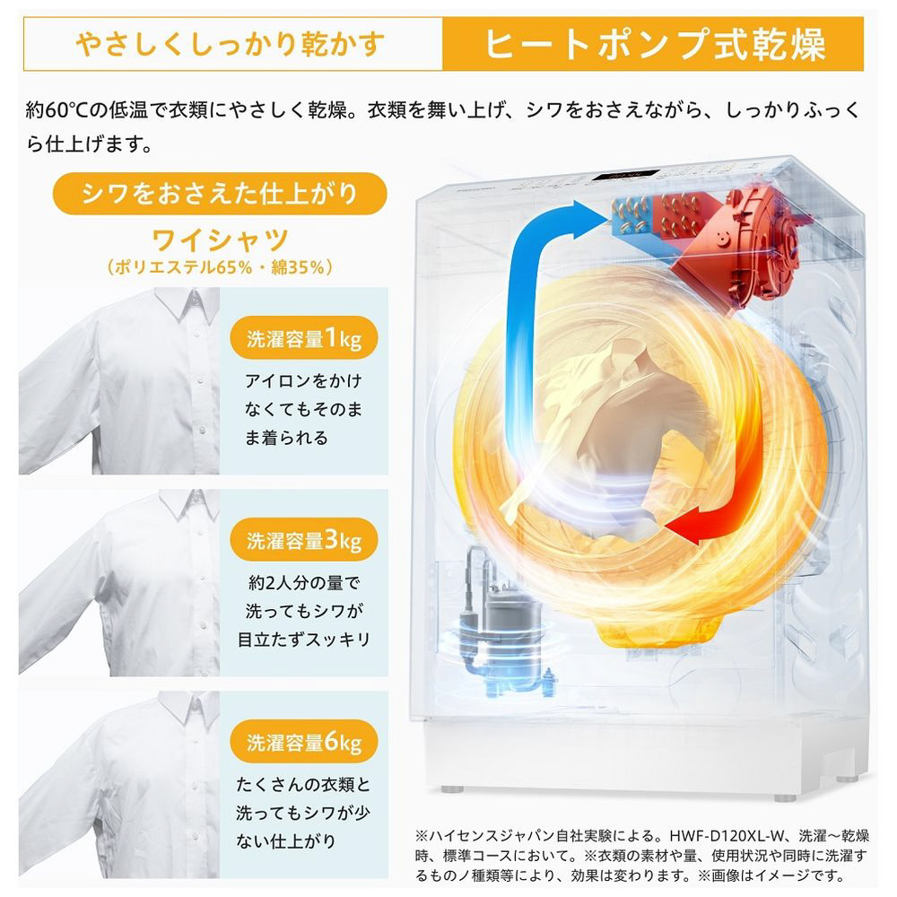| 商品名 | ドラム式洗濯機 ホワイト HWF-D120XL-W [洗濯12.0kg /乾燥6.0kg /ヒートポンプ乾燥 /左開き] |