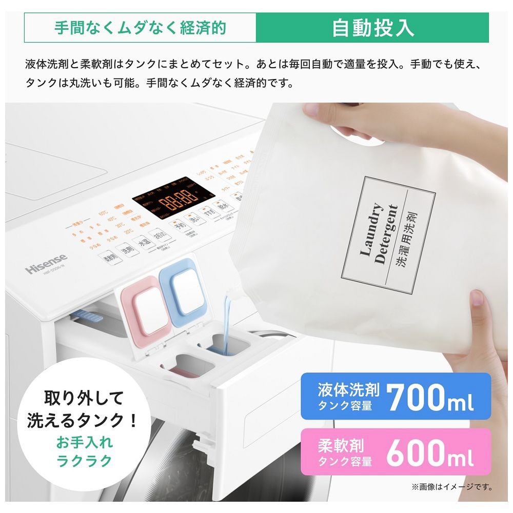 ・タンク容量が液体洗剤700ml、柔軟剤600mlもあり、補充回数も少なくて済みます。また、手動投入タンクも別にあり、柔軟剤の使い分けができます。