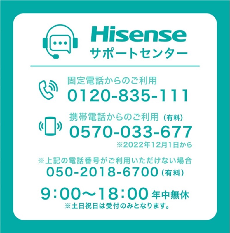 | メーカー | Hisense(ハイセンス) |