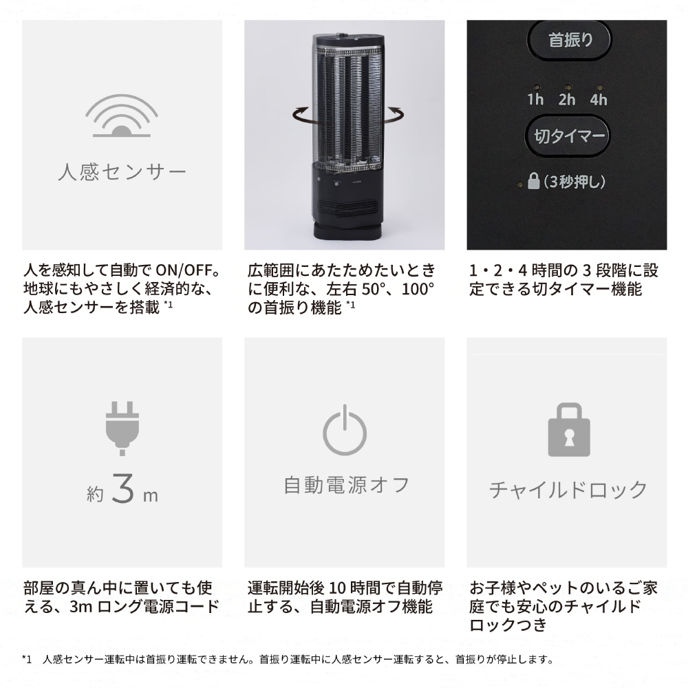 | 商品名 | 足元ファンヒーター付き 遠赤外線暖房機 にこポカ siroca ブラック SH-FC251K [石英管ヒーター /人感センサー付き] |