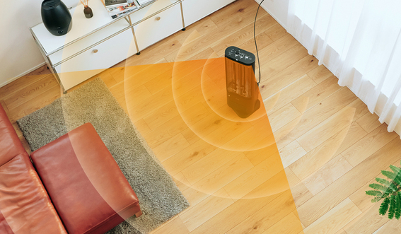 遠赤外線は体だけでなく床や壁、天井まであたためます。さらにそこから生まれる輻射熱でお部屋全体が穏やかにあたたまり、やさしいぬくもりに包まれます。
