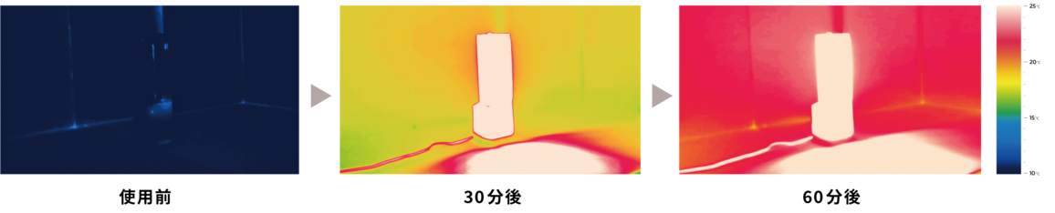 また、輻射熱を利用して、体はもちろん床や壁、天井などお部屋そのものもじんわりあたためます。