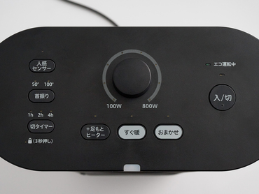 最大800Wまで出力を調節できる、遠赤外線ヒーター