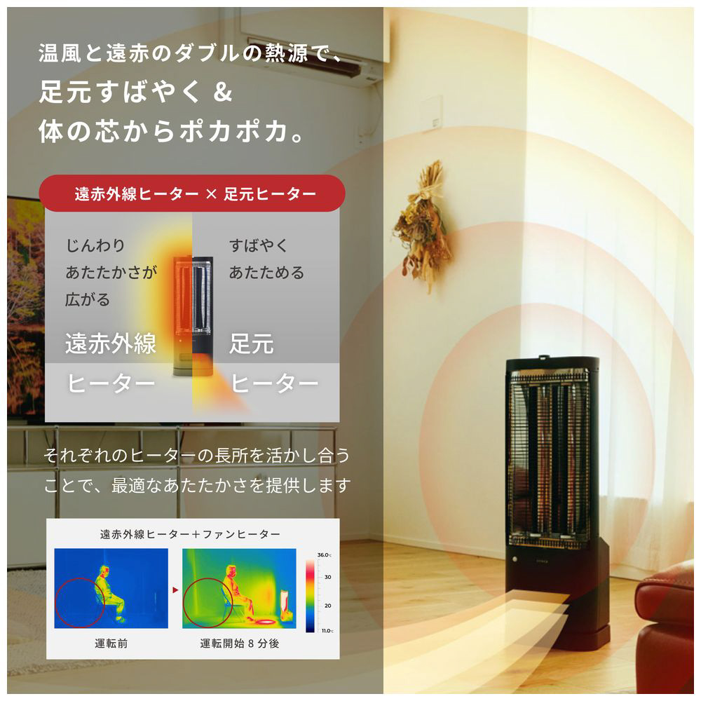 立ち上がりが速い「ファンヒーター」からだの芯まであたためる「遠赤外線ヒーター」今までにない2つの熱源を合わせもったヒーター