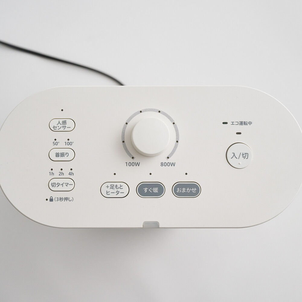10 分経過すると足元ヒーター(ファンヒーター)はワット数を自動的に下げて省エネ運転に切り替えます。
