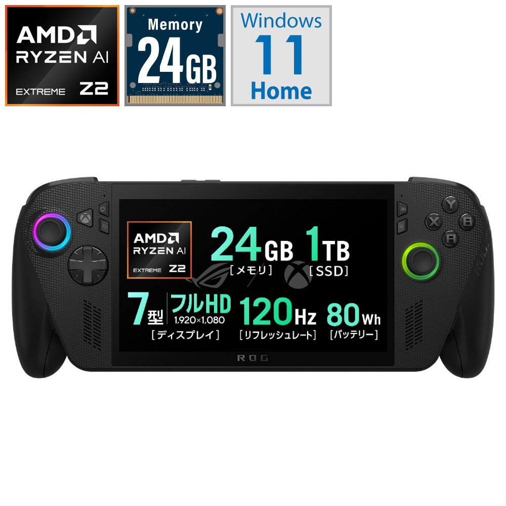 | 商品名 | ポータブルゲーミングPC ROG Xbox Ally X ブラック RC73XA-Z2E24G1T [7.0型 /Windows11 Home /メモリ:24GB /SSD:1TB] |