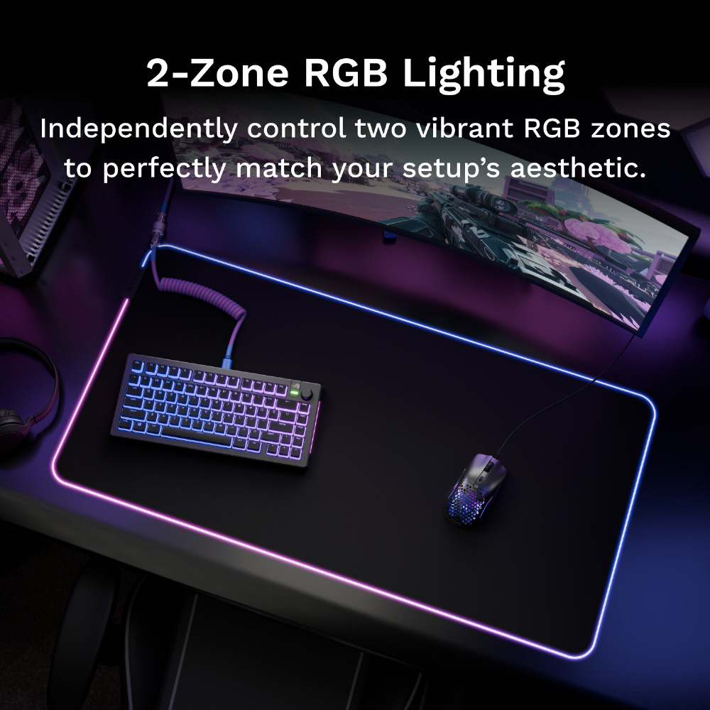 外周部分に2ゾーンのRGBライティングを搭載。滑らかで安定した操作を実現するゲーミングマウスパッド