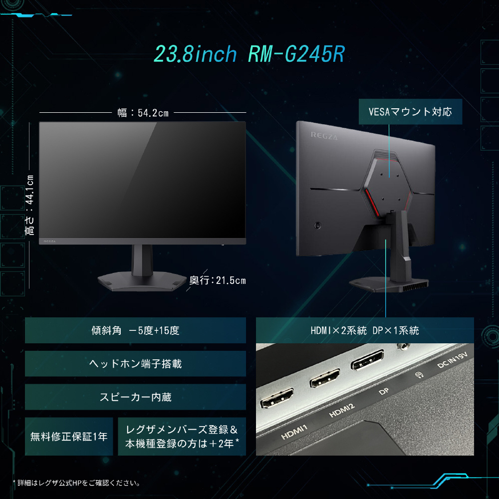 | 商品名 | RM-G245R ゲーミングモニター [23.8型 /フルHD(1920×1080) /ワイド /240Hz] |