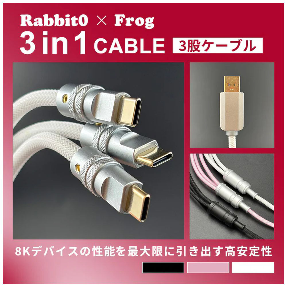 マウス/キーボードケーブル [USB-Cx3 ⇔ USB-A(PC側) /1.5m] Rabbit × Frog Trident Link Cable ピンク RB-FG-TLINK-CABLE-PINK