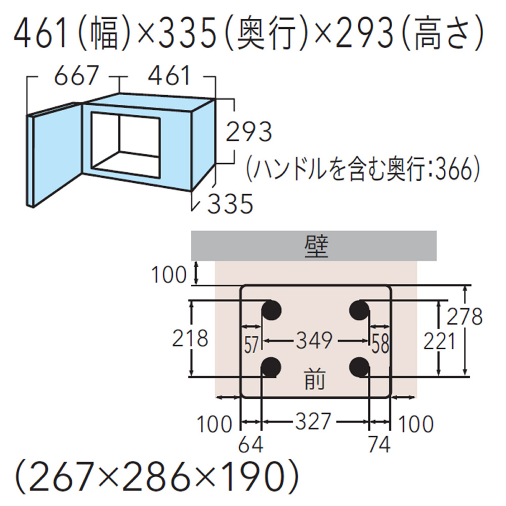 | 庫内寸法(幅×高さ×奥行)mm | W267×H190×D286 |