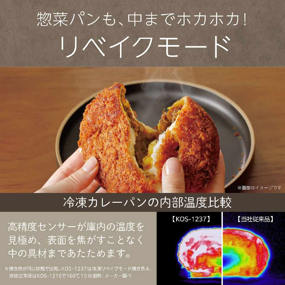 冷凍たい焼きや冷凍総菜パンのリベイクもカンタンに。焦がさず、中までしっかり温めます。解凍不要で、そのままOK。