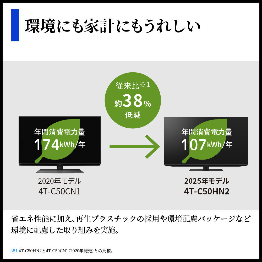| 商品名 | 液晶テレビ 4T-C50HN2 [50V型 /4K対応 /BS・CS 4Kチューナー内蔵 /YouTube対応] |
