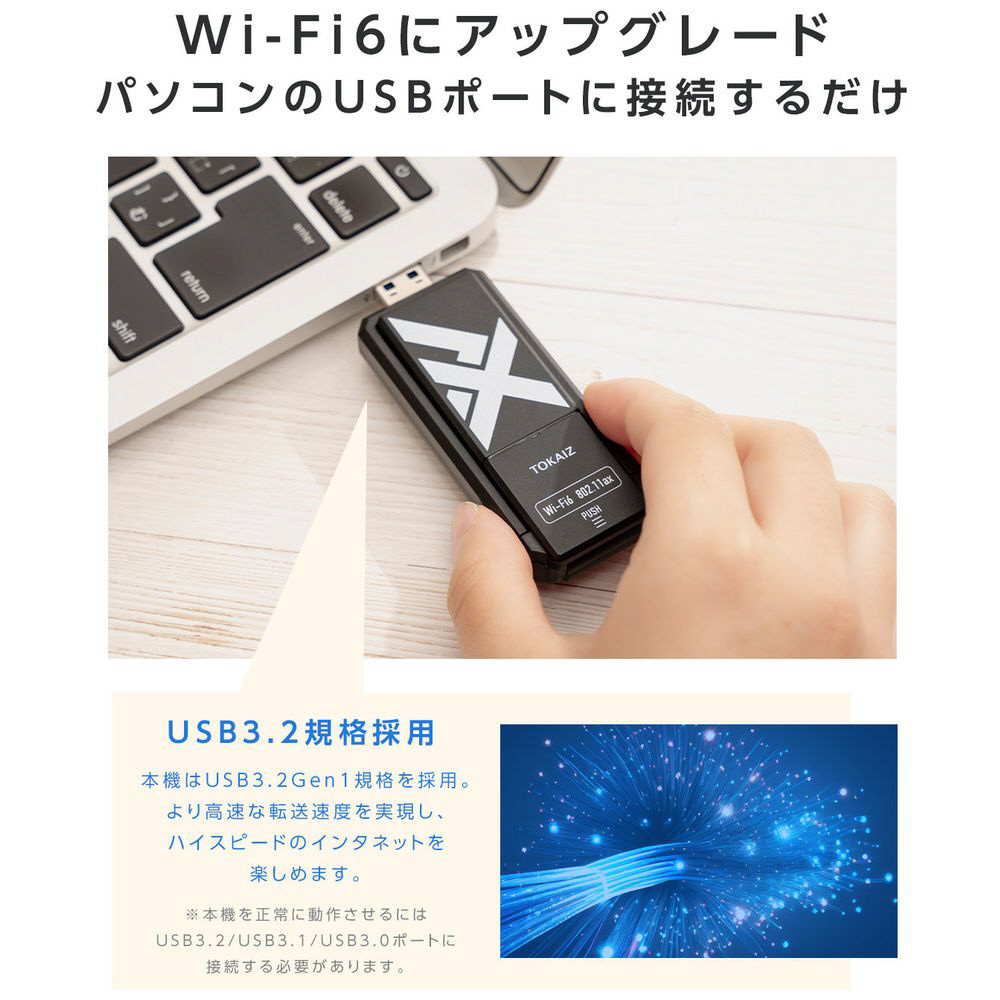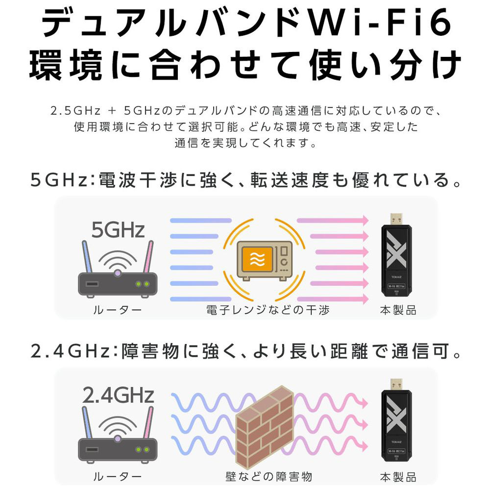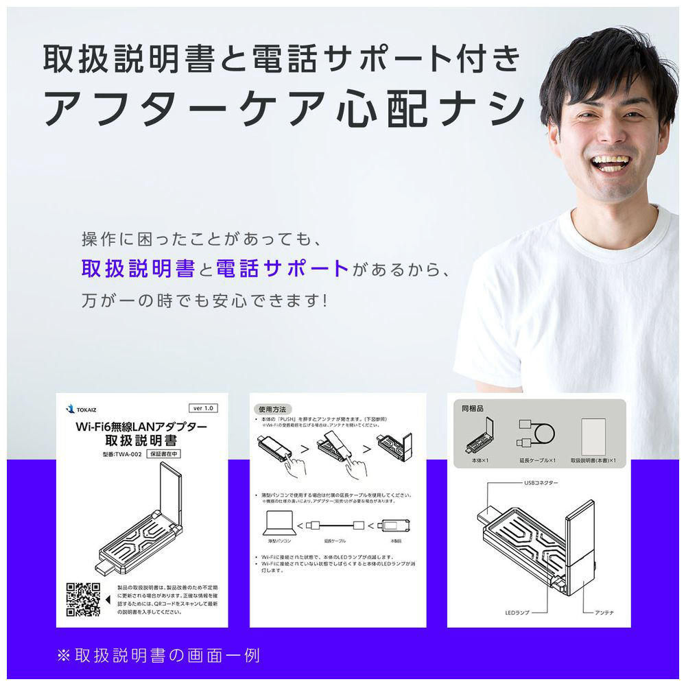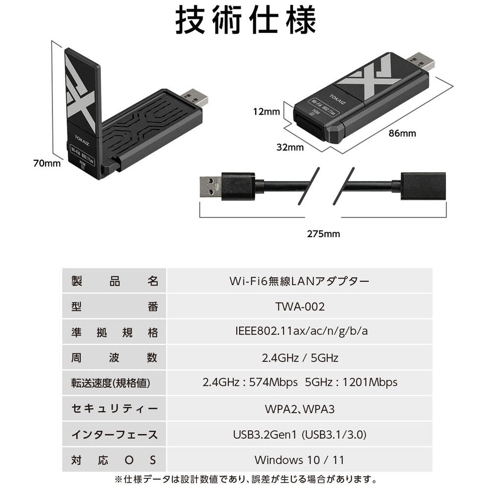 TWA-002 無線LAN子機 USB-A接続 574Mbps+1201Mbps (Windows11対応) [Wi-Fi 6(ax) ]