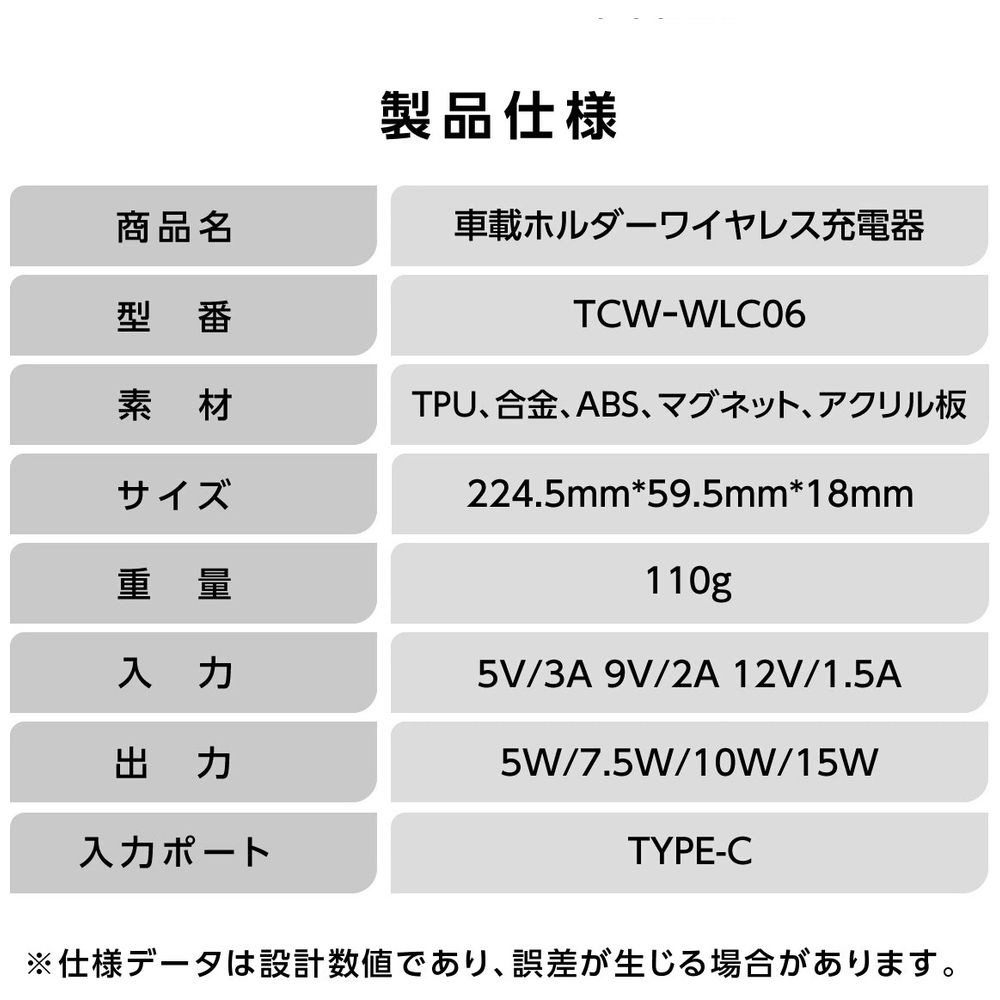車載ホルダー ワイヤレス充電器 Qi2規格対応 TCE-WLC06
