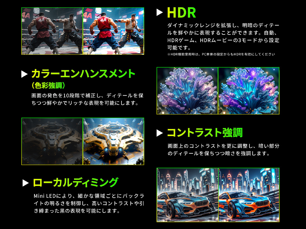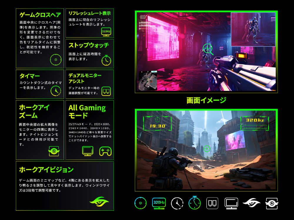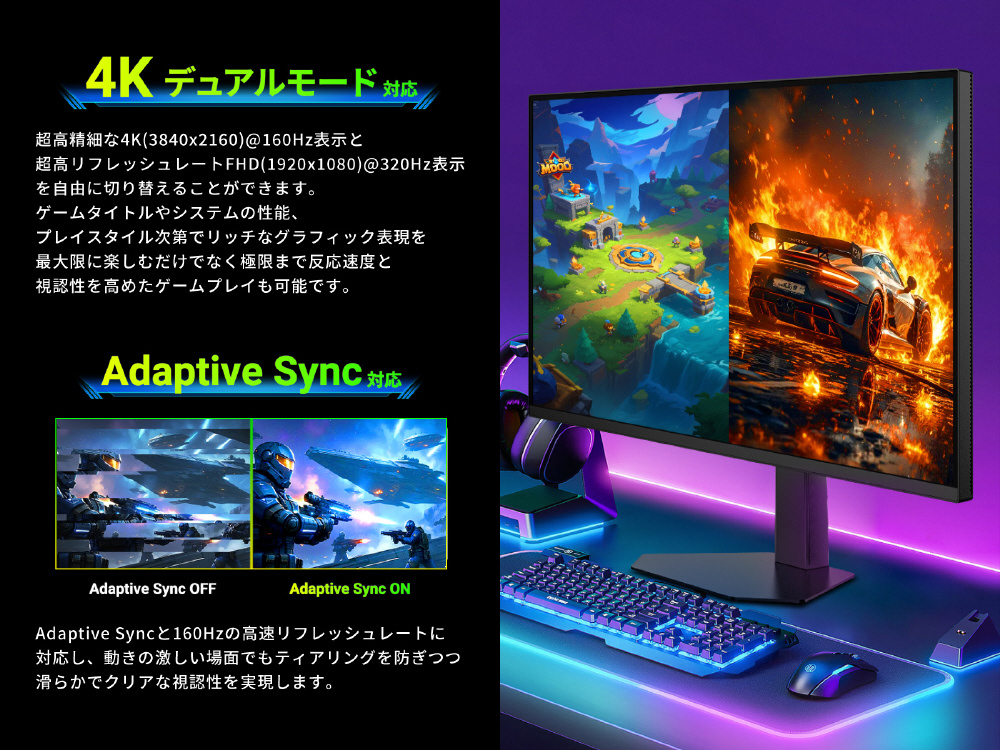 ■デュアルモード 4K 160Hz / FHD 320Hz動作に対応