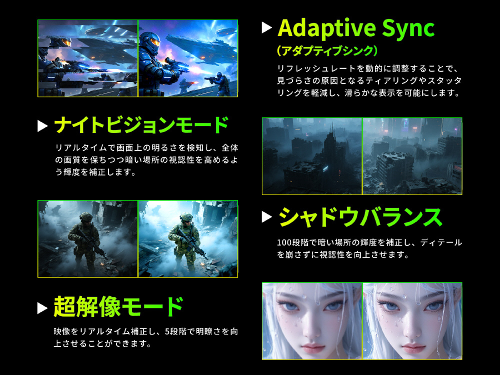 ゲームカテゴリやプレイスタイルに応じて美麗なグラフィックスと俊敏なレスポンスそれぞれを発揮することが可能です。