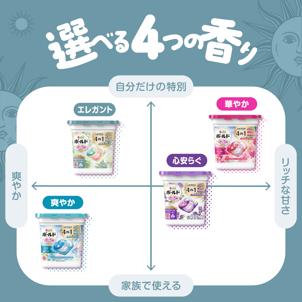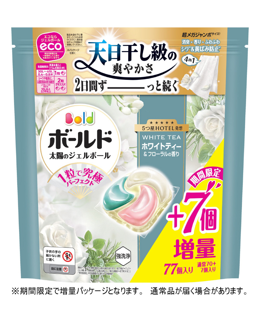 | 商品名 | ボールドジェルボール4D心弾けるホワイトティー&フローラルの香り 詰替超メガジャンボサイズ 70個 心弾けるホワイトティー&フローラル |