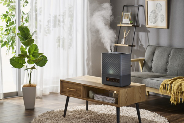 約5Lの大容量タンクを搭載した上部給水タイプのハイブリッド式加湿器。超音波振動板とPTCヒーターを組み合わせたハイブリッド方式により、加湿中でも室温が下がりにくく、冬の乾燥対策に最適です。