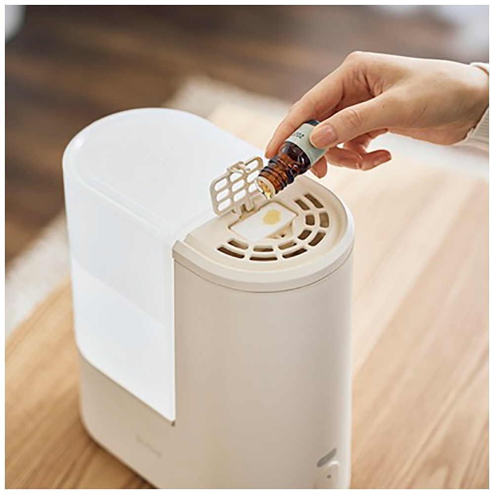沸騰させた蒸気で清潔に加湿できるスチーム式加湿器。最大約150ml/hの加湿量と最大約12時間の連続運転で、乾燥しがちな季節も快適な空間を保ちます。約1.8Lのタンクは本体から簡単に取り外せ、ラクに給水可能。タンクは丸洗いできる設計で清潔性も抜群です。コンパクトな本体は移動も軽々で、デスク周りや寝室でも場所を取らずに活躍。さらに、アロマ対応で、蒸気にお好みの香りをプラスして癒し空間を演出できます。
