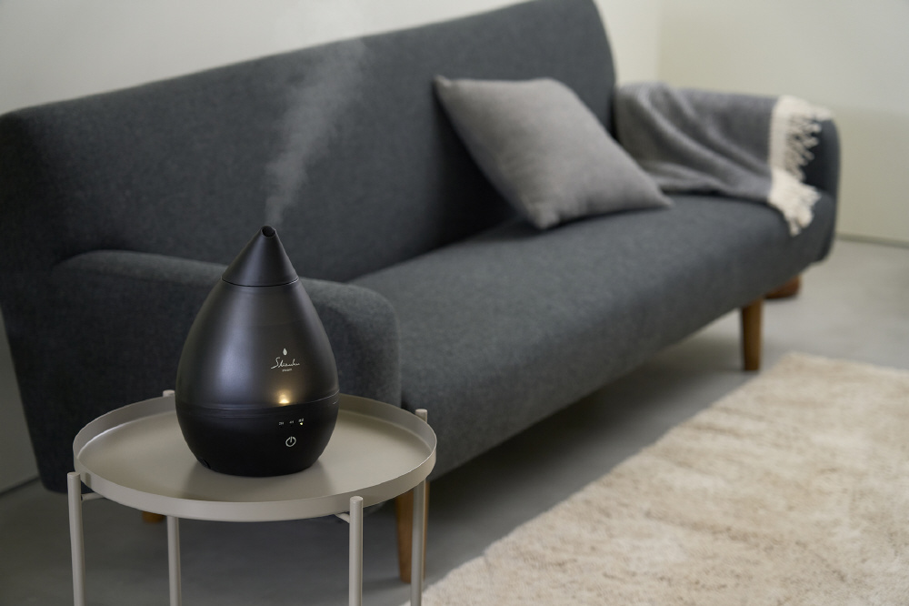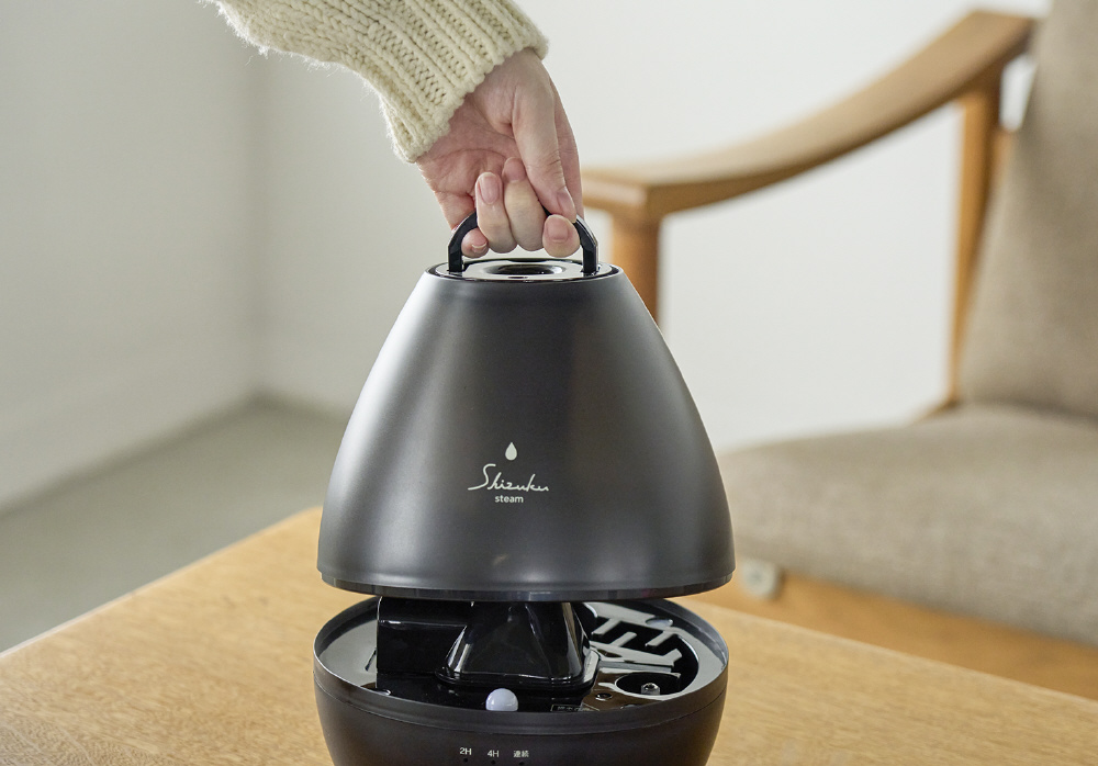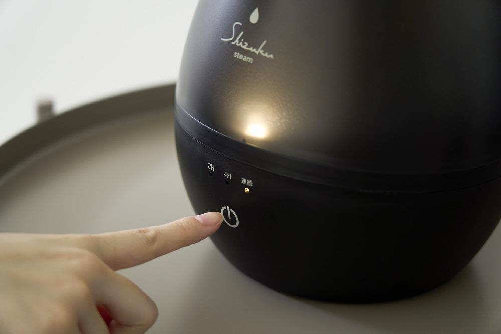 ■スチーム蒸気で加湿するSHIZUKU タンクの水をヒーターで加熱して、気化させた蒸気をファンで送りだす加湿器。 スチーム式は、加湿能力が高く短時間でお部屋を潤します。