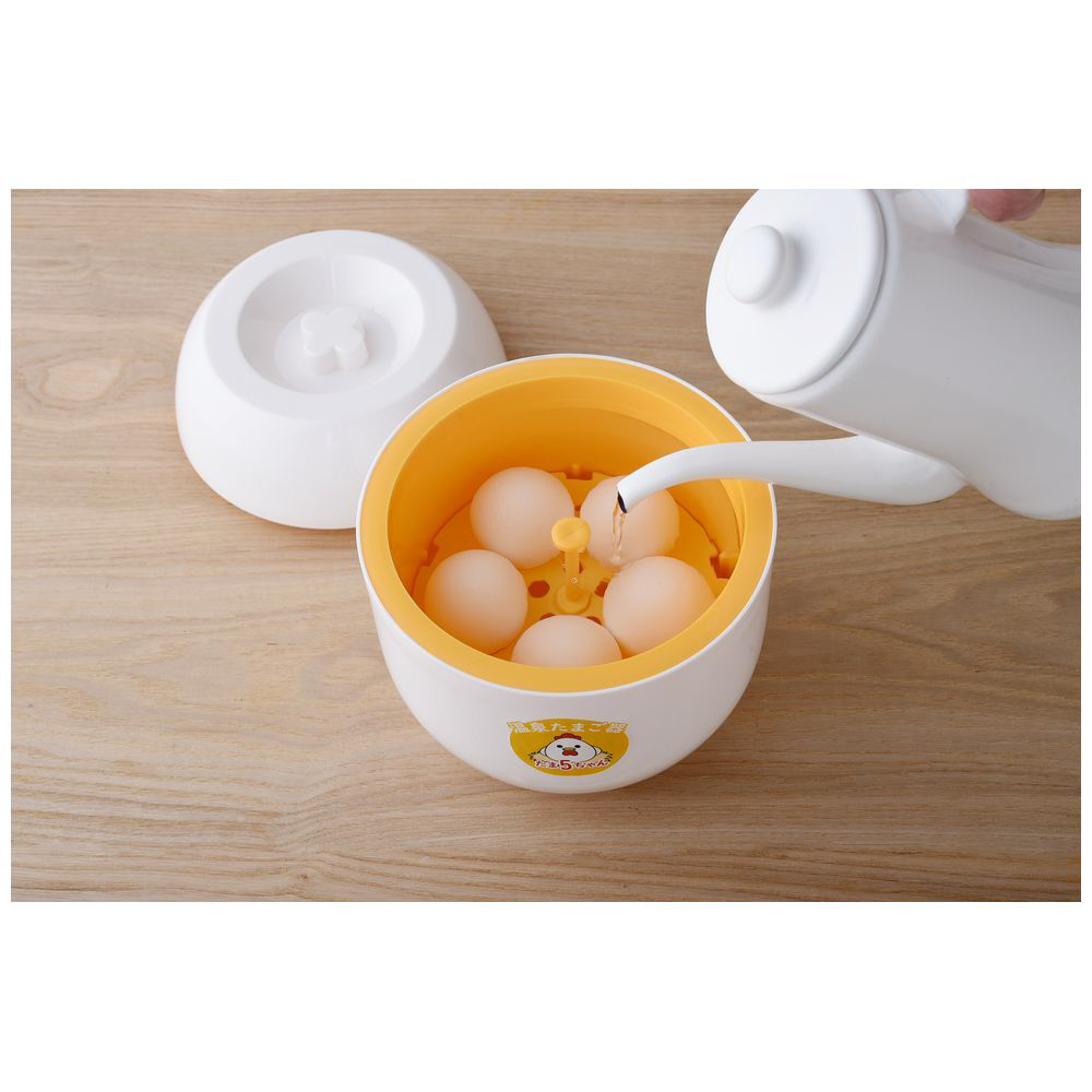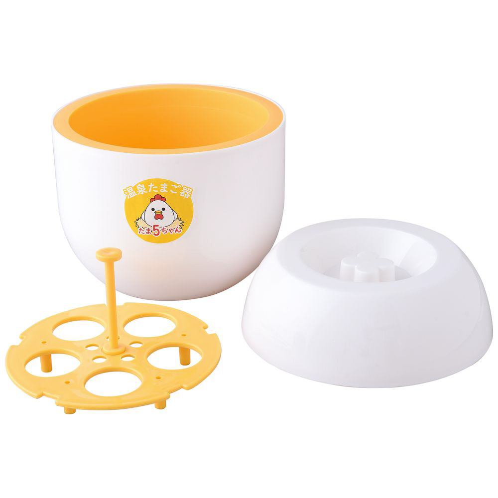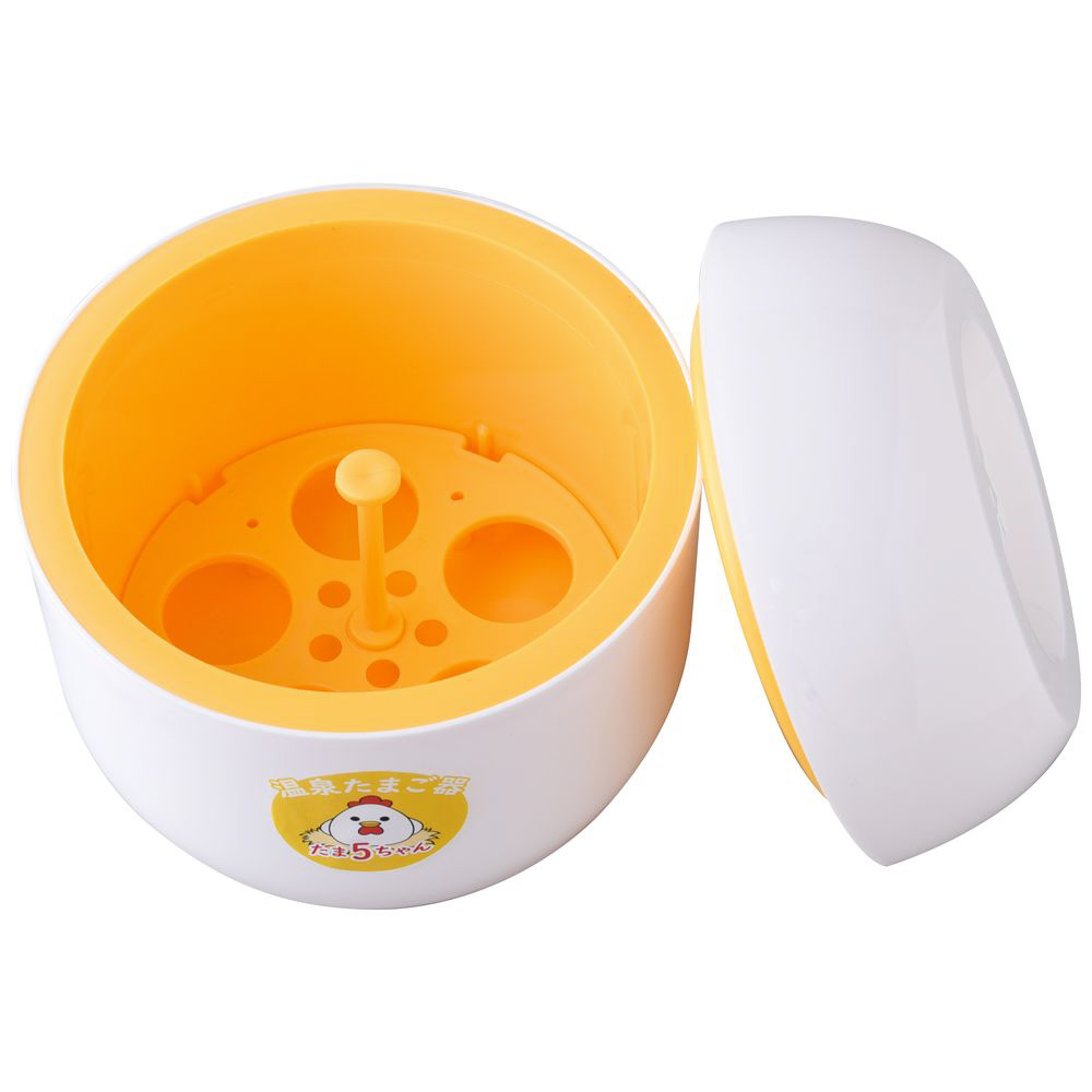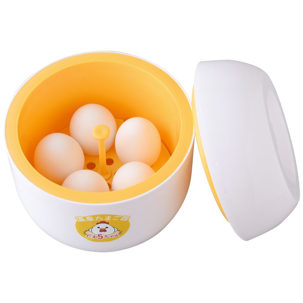 熱湯を注いで一度に5つの温泉たまごが出来ます