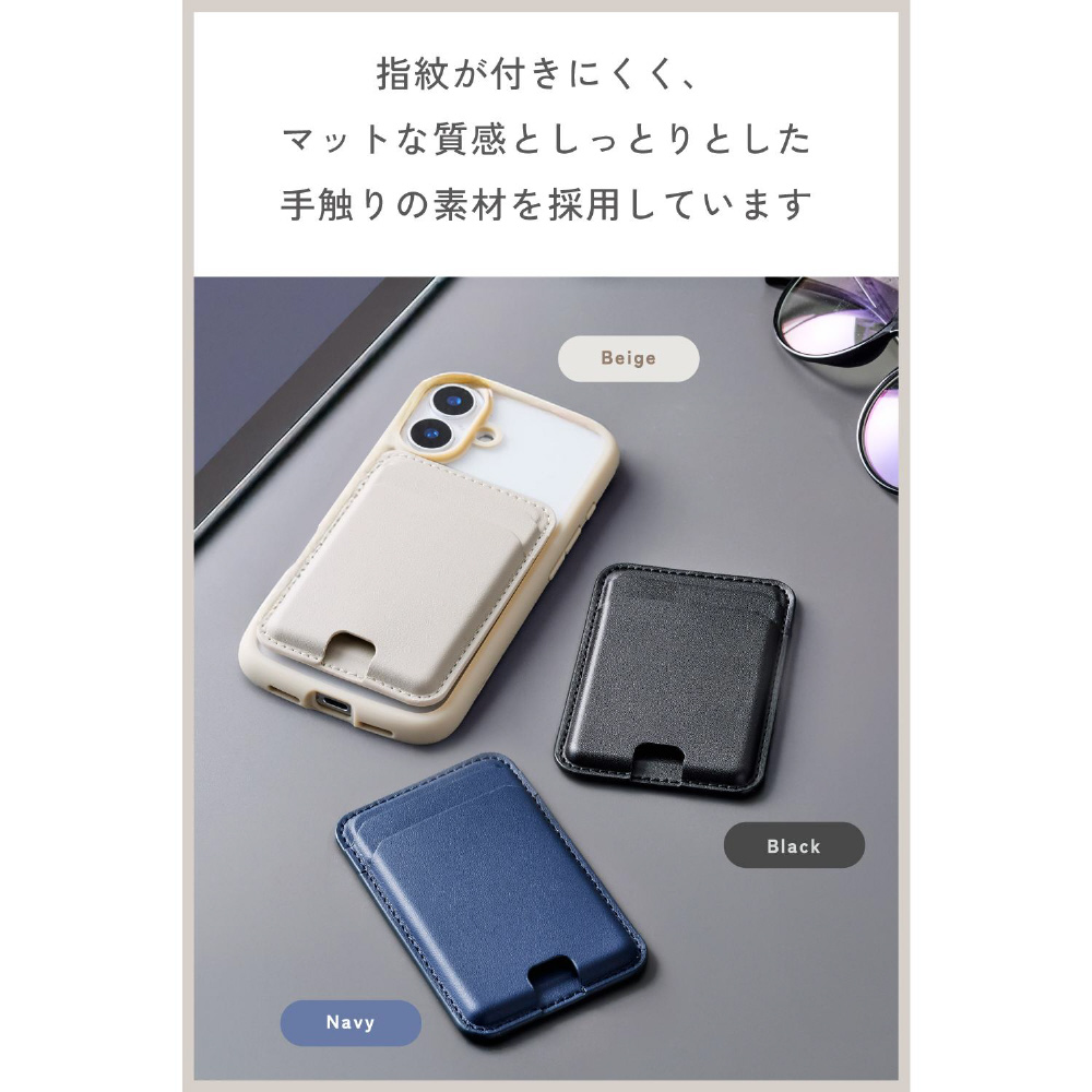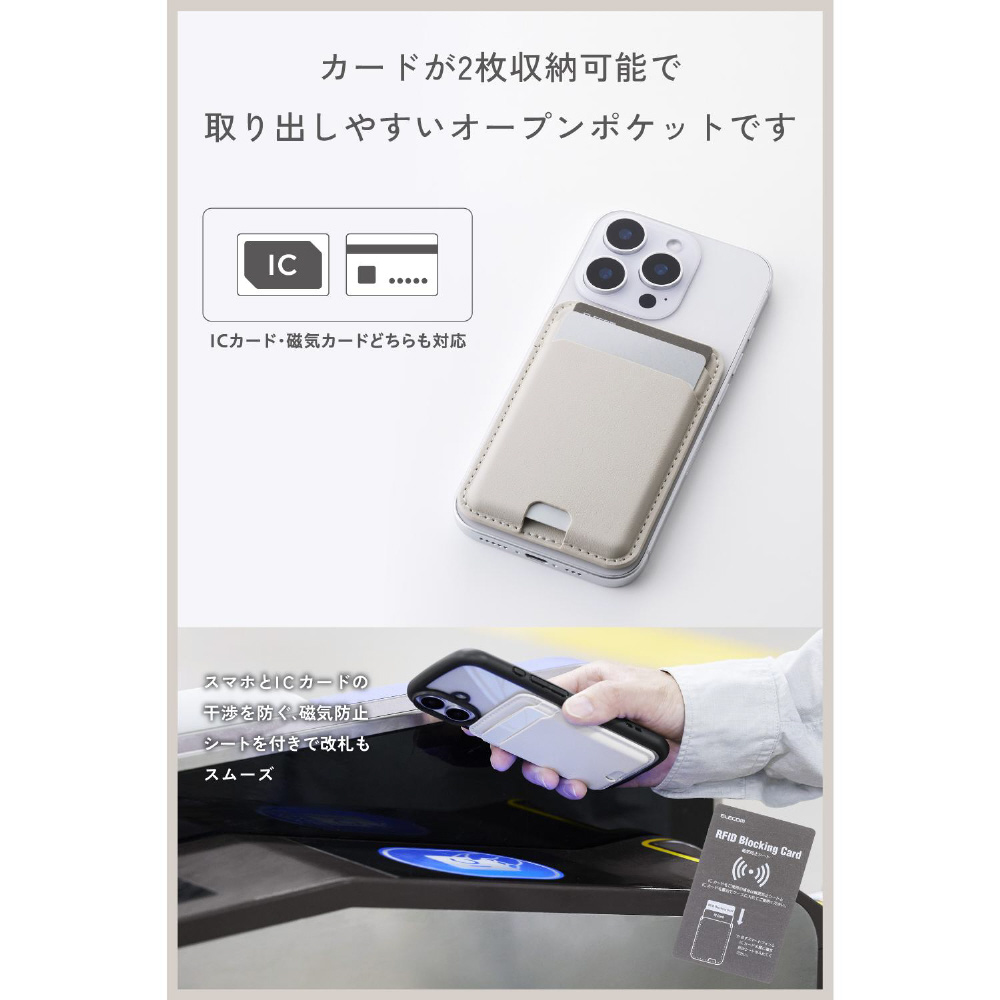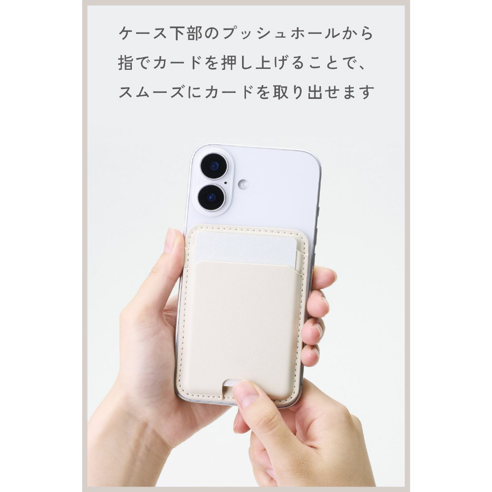 MagSafe カードケース iPhone用 2枚収納 レザー風 薄型 マグネット脱着 オープンポケット スマホ カード入れ MAGKEEP ベージュ AMS-MAGCDBG
