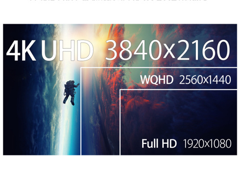 27インチのIPSパネルを搭載し、4K(3840x2160)解像度に対応した液晶モニターです。フルHD(1920x1080)の4倍の高解像度は複数のウィンドウの同時表示を可能にし、圧倒的な高生産性を実現します。