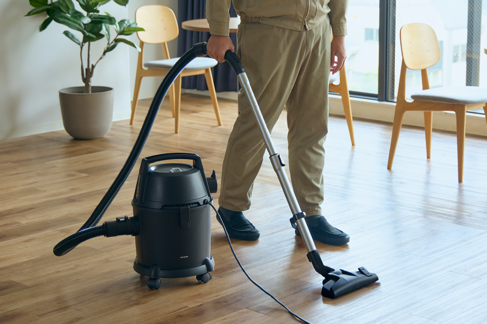 店舗掃除に使える十分な吸引力?。乾湿両用で雨に濡れたごみにも対応?
