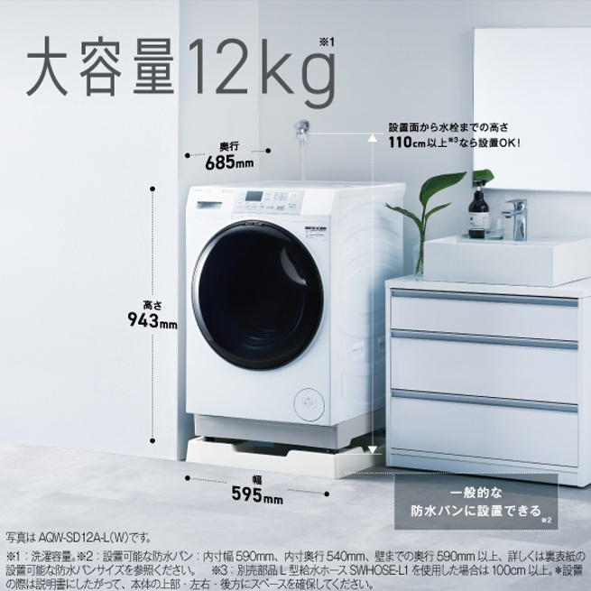 商品名 | ドラム式洗濯乾燥機 AQUA ホワイト AQW-SD12A-L(W) [洗濯12.0kg /乾燥6.0kg /ヒートポンプ乾燥 /左開き] 【買い替え10000pt】 |