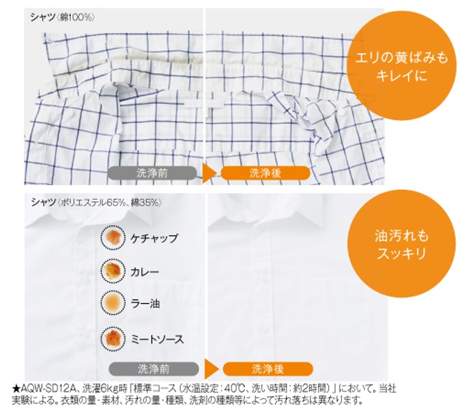 洗浄液を温めることで酵素の力を活性化させ、あきらめていた繊維の奥にしみついた汚れや黄ばみまでキレイに落とします。
