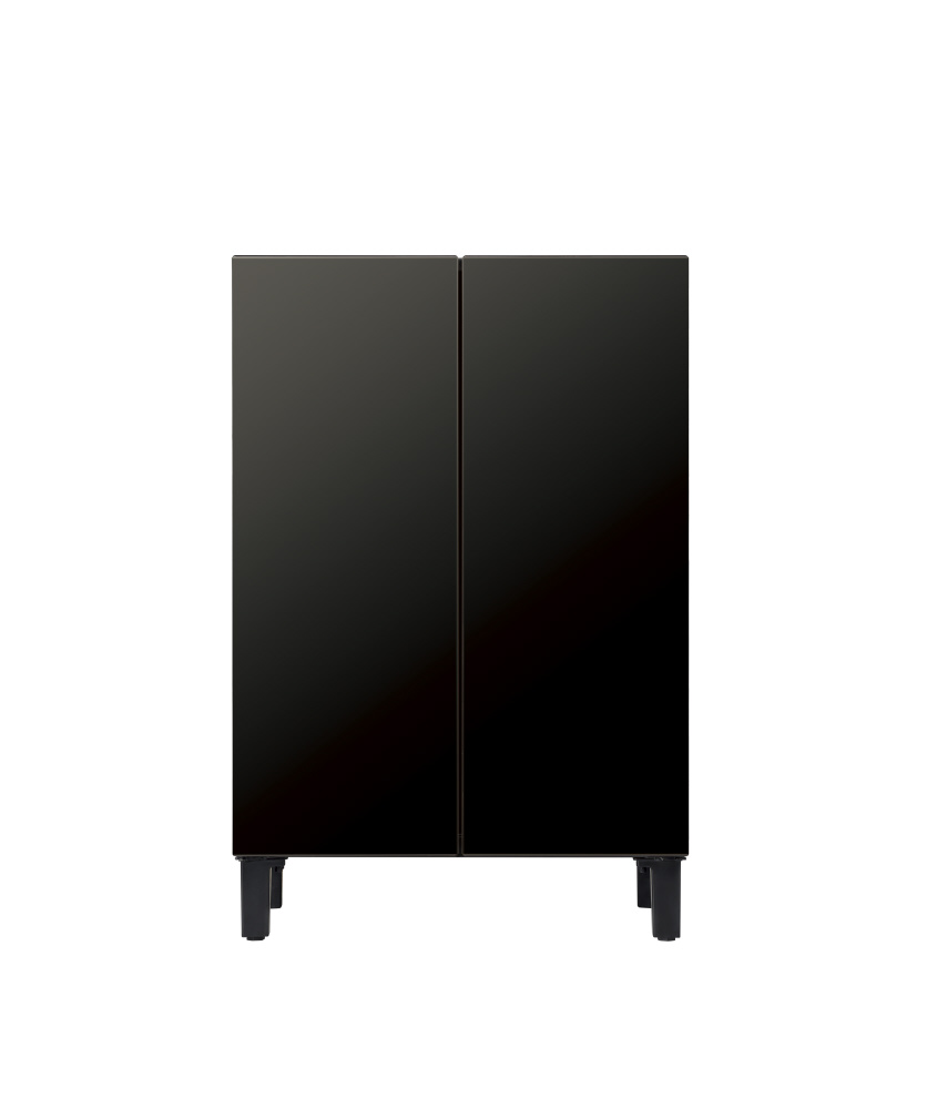 奥行き45cmの薄型設計。ほかの家具とも馴染みやすく、インテリアに溶け込みます。 フレンチドアだから開閉も省スペースで動線を妨げません。