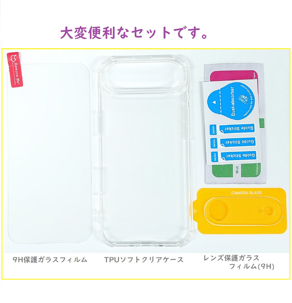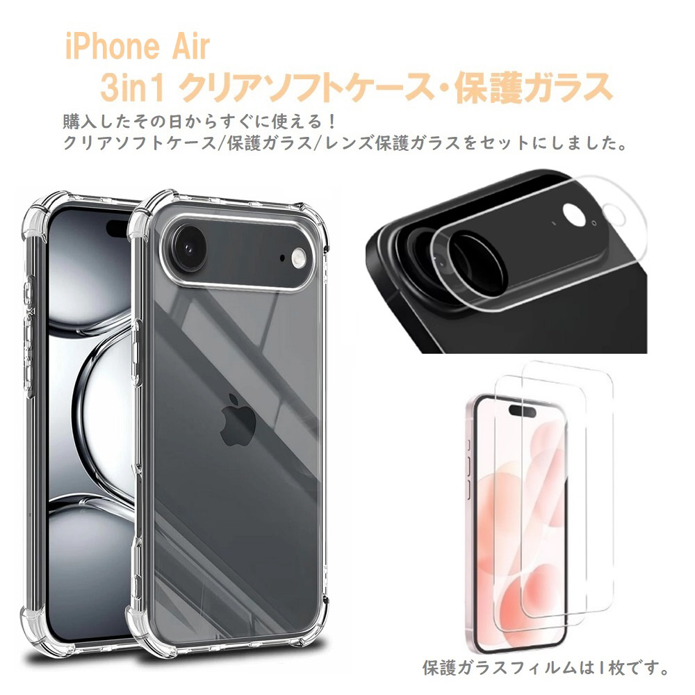iPhone Air 用 3in1 TPUソフトクリアケース・保護ガラスセット