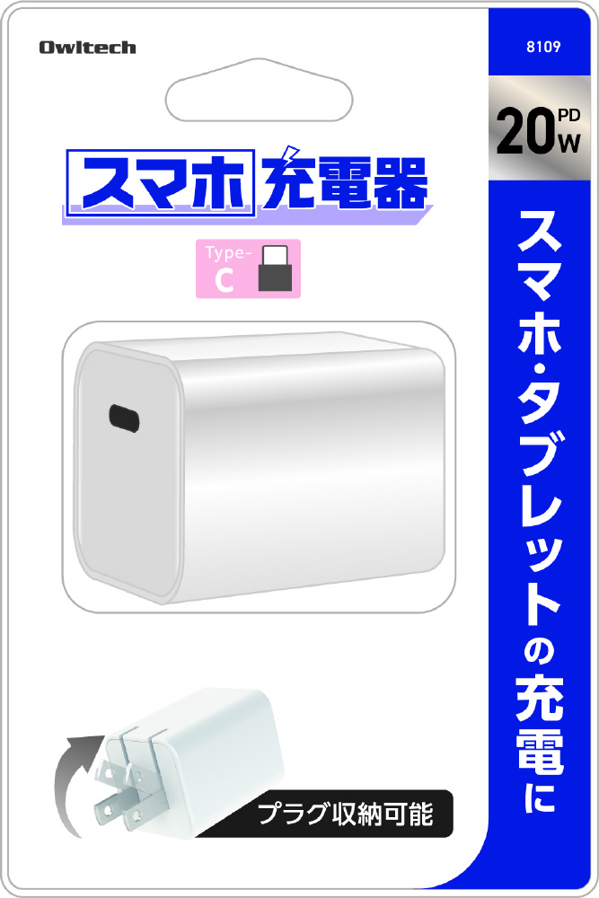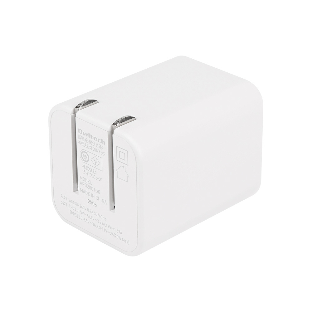 AC充電器 PowerDelivery20W出力対応 GaN採用 USB Type-C×1