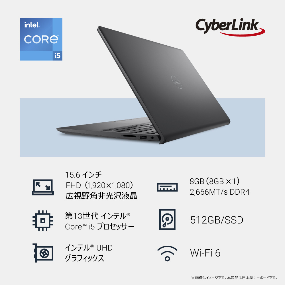 商品名 ノートパソコン Dell 15 DC15250 カーボンブラック ND45-FWBC [15.6型 /Windows11 Home /intel Core i5 /メモリ:8GB /SSD:512GB /日本語版キーボード /2025秋冬モデル]