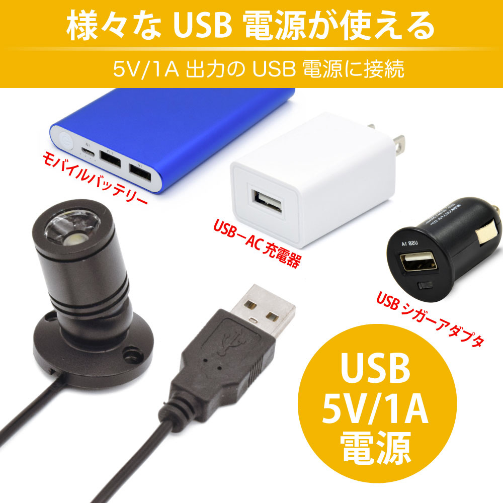 本製品は、USB電源対応しており、USB-ACアダプターやモバイルバッテリー、USBシガーソケットに接続してご利用いただけます。