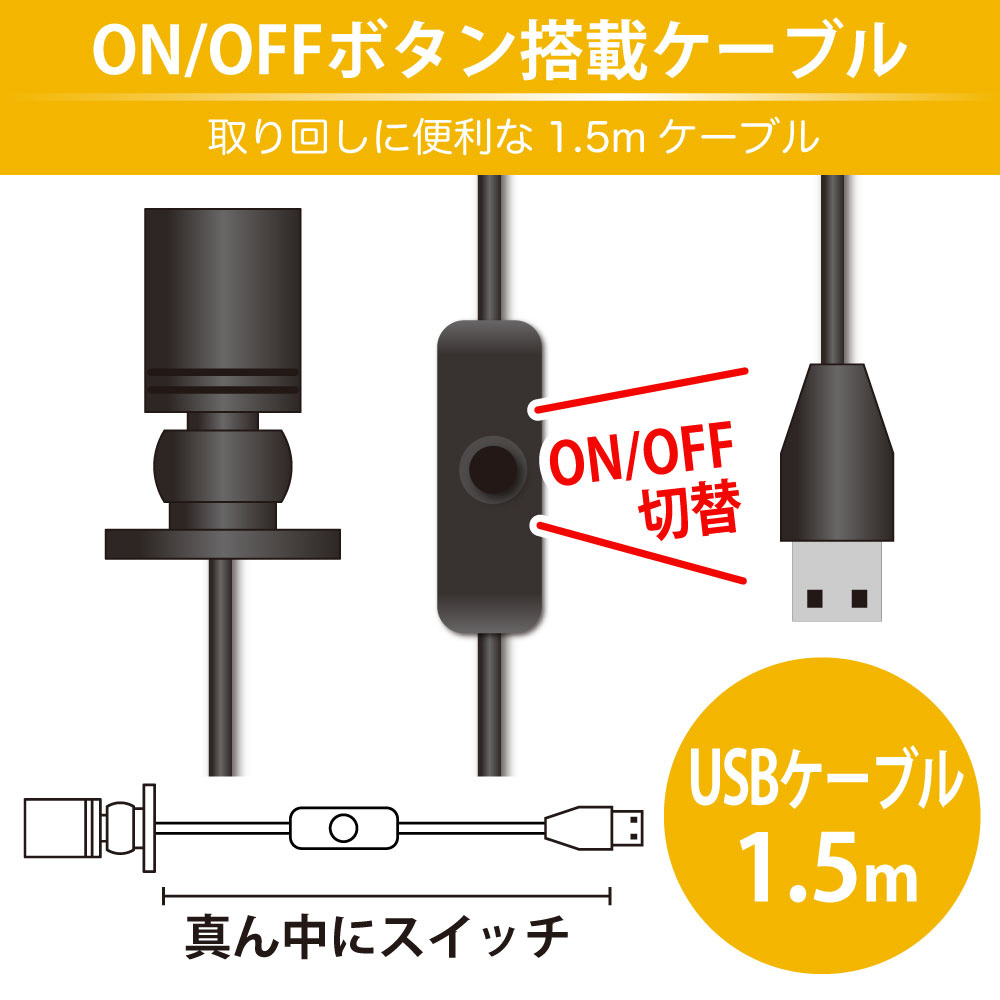 1.5mのUSBケーブルの真ん中にライトのON/OFFボタンを搭載。