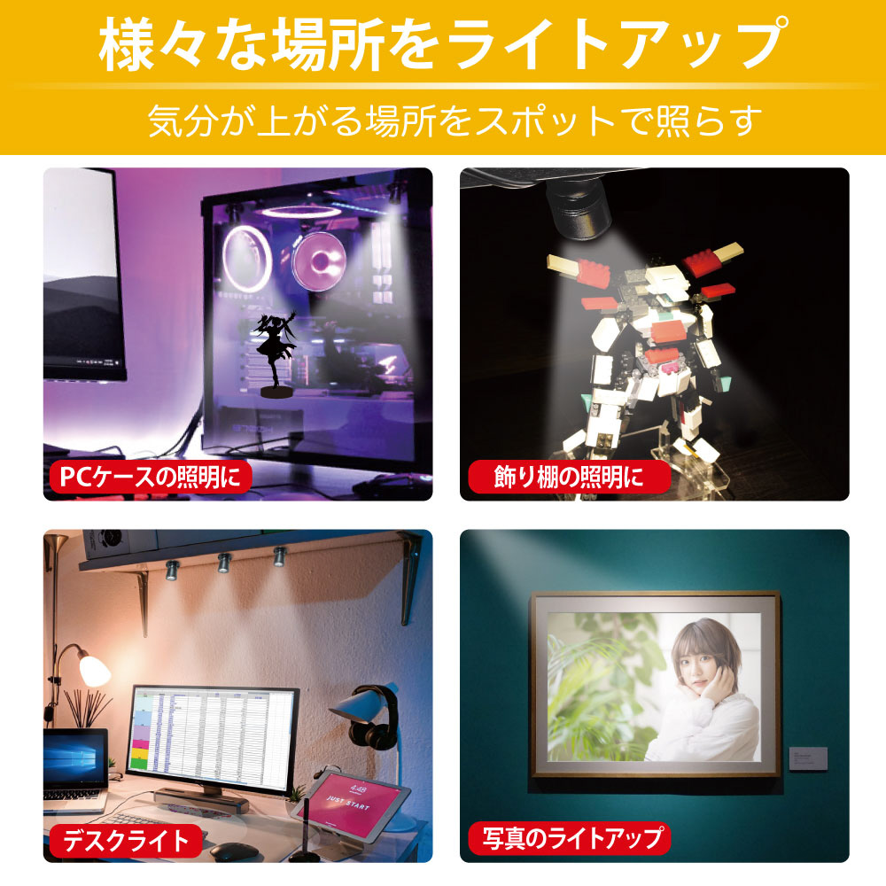 机や棚に飾った推しグッズを魅力的にライトアップするUSBスポットライト。